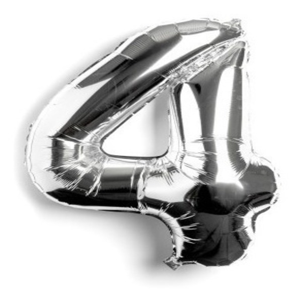 GLOBO NUMERO 4 METALIZADO PLATA 40cm